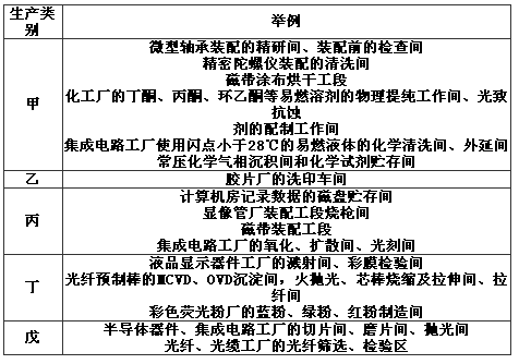 表B 潔凈廠房生產(chǎn)工作間的火災(zāi)危險(xiǎn)性分類(lèi)舉例: