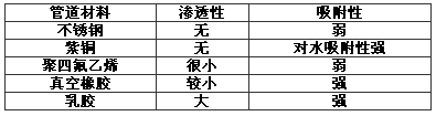 不同材料的管道對(duì)氣體和水的滲透、吸附能力見(jiàn)表10。