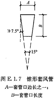 E.1.7 選用套管法時,可用輕質(zhì)板材或膜材做成與風(fēng)口內(nèi)截面相同或相近、長度大于2倍風(fēng)口邊長的直管段作為輔助風(fēng)管,連接于過濾器風(fēng)口外部,在套管出口平面上,均勻劃分小方格,方格邊長不大于200mm,在方格中心設(shè)測點。對于小風(fēng)口,最少測點數(shù)不少于6點。也可采用錐形套管,上口與風(fēng)口內(nèi)截面相同或相近,下口面積不小于上口面積的一半,長度宜大于1.5倍風(fēng)口邊長,側(cè)壁與垂直面的傾斜角不宜大于7.5°,以測定截面平均風(fēng)速,乘以測定截面凈面積算出風(fēng)量(圖E.1.7)。