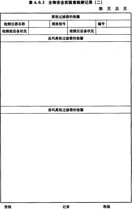 A.0.2 生物安全實(shí)驗(yàn)室送風(fēng)、排風(fēng)高效過濾器檢漏情況應(yīng)按表A.0.2進(jìn)行記錄。