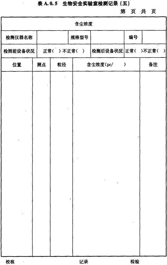 A.0.5.生物安全實(shí)驗(yàn)室房間含塵濃度的檢測應(yīng)按表A.0.5進(jìn)行記錄。