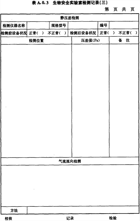 A.0.3 生物安全實(shí)驗(yàn)室房間靜壓差和氣流流向的檢測應(yīng)按表A.0.3進(jìn)行記錄。