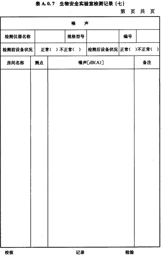 A.0.7 生物安全實(shí)驗(yàn)室房間噪聲的檢測應(yīng)按表A.0.7進(jìn)行記錄。
