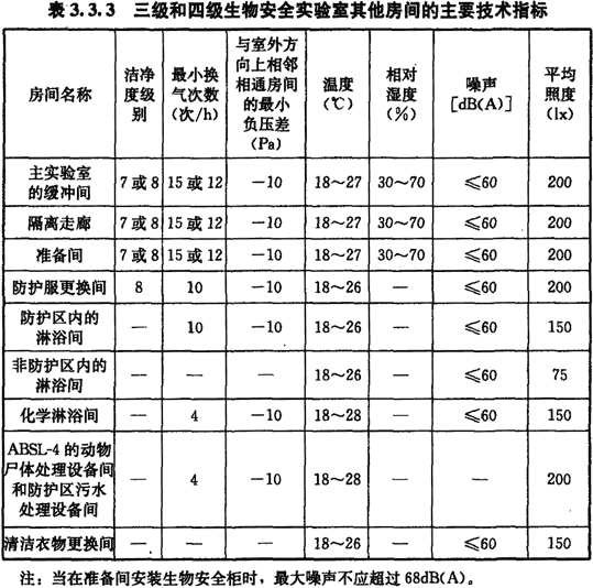 3.3 生物安全實(shí)驗(yàn)室的技術(shù)指標(biāo)