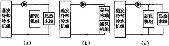 通常情況下,當室外空氣的露點溫度低于14℃~15℃時,采用間接—直接蒸發(fā)冷卻方式,可以得到接近16℃的空調冷水作為空調系統(tǒng)的冷源。直接蒸發(fā)冷卻式系統(tǒng)包括水冷式蒸發(fā)冷卻、冷卻塔冷卻、蒸發(fā)式冷凝等。在西北部地區(qū)等于燥氣候區(qū),可通過蒸發(fā)冷卻方式直接提供用于空調系統(tǒng)的冷水,減少人工制冷的能耗,符合條件的地區(qū)推薦優(yōu)先推廣采用。