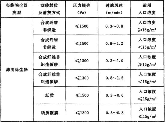 3 過濾風(fēng)速和除塵效率、濾袋壽命、清灰效果、除塵器壓力損失關(guān)系密切,一般來說,較小的過濾風(fēng)速會提高除塵效率、延長濾袋壽命,改善清灰效果。但過小的過濾風(fēng)速會造成設(shè)備型號偏大,設(shè)備初投資增加。國家現(xiàn)行的幾項(xiàng)除塵器設(shè)備標(biāo)準(zhǔn)都對除塵器過濾風(fēng)速、壓力損失等作了規(guī)定,總結(jié)為表3,根據(jù)表3總結(jié)為本條第3款。
