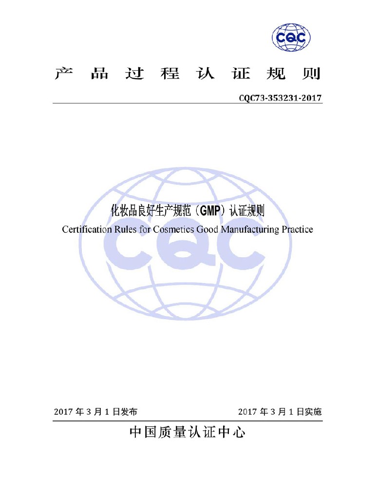 轉(zhuǎn)自:中國質(zhì)量認(rèn)證中心:化妝品良好生產(chǎn)規(guī)范認(rèn)證(GMPC)